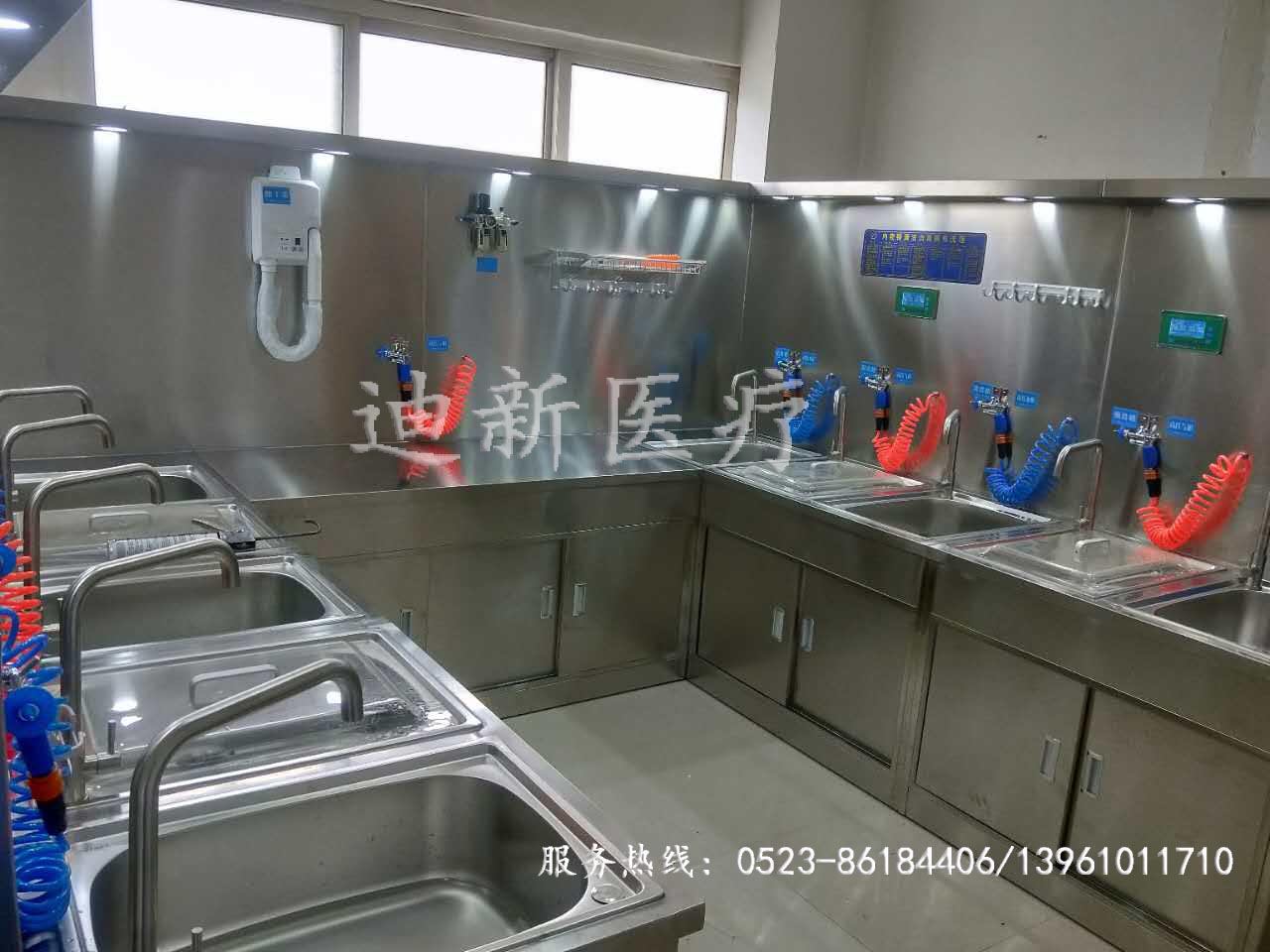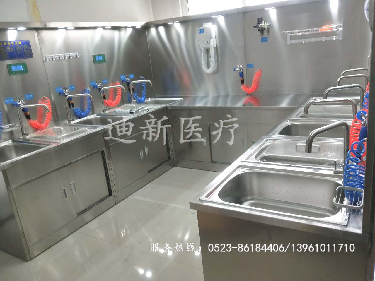 熱烈祝賀青海東大肛腸醫(yī)院不銹鋼清洗裝置安裝調(diào)試完畢! 本清洗設(shè)備嚴(yán)格按照規(guī)范要求的清洗流程:初洗、酶洗、清洗、浸泡、末洗、干燥、無菌儲藏或使用進(jìn)行設(shè)計(jì),全過程獨(dú)立分級完成并配備部分設(shè)備協(xié)助和提示。采用自動(dòng)隱藏,能夠自動(dòng)的進(jìn)行上液或隱藏,避免以往人為手動(dòng)上液、下液帶來的不便,而氣體解析系統(tǒng)則能有效的排除操作室內(nèi)由于浸泡時(shí)揮發(fā)的異味氣體,減少了對醫(yī)務(wù)人員的傷害。自動(dòng)灌流器的使用完全替代手工使用注射器操作,減少大量人工操作次數(shù)及勞動(dòng)強(qiáng)度,整個(gè)過程清晰流暢,操作簡便,安全高效。 下面迪新小編給大家展示一下現(xiàn)場的圖片: